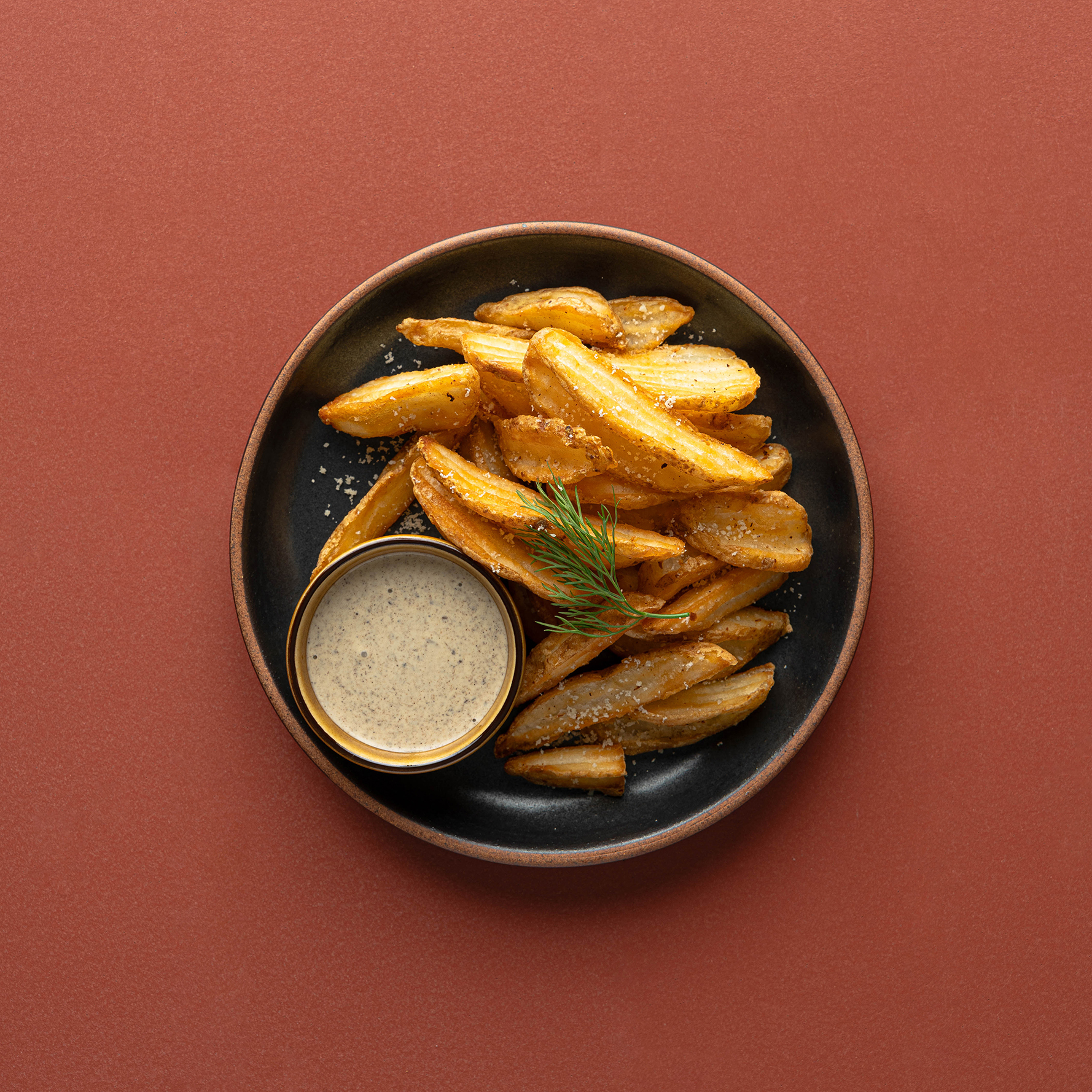金黃酥脆的薯塊,裹上馥郁的松露。松露獨特的奢華香氣,讓鬆軟的馬鈴薯昇華。一份無法抗拒的療癒美味。