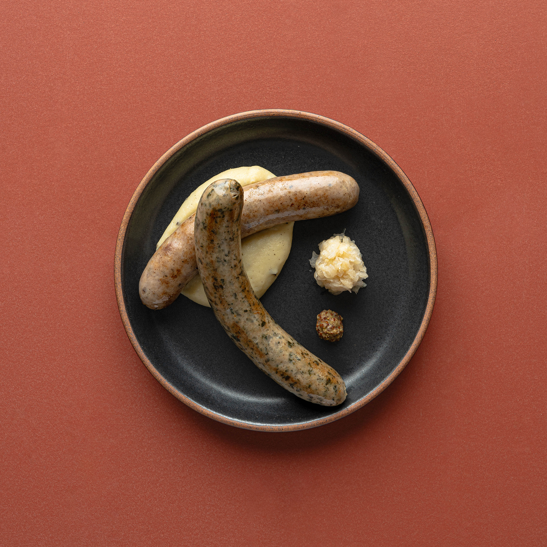 鼠尾草香腸、羅勒香腸、德式酸菜、薯泥、芥末子醬